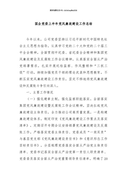 【七哥公文】2025年:【七哥公文】国企党委上半年党风廉政建设工作总结+更多免费公文+VX:QiGeGongWen2024+更多免费公文+VX:QiGeGongWen2024