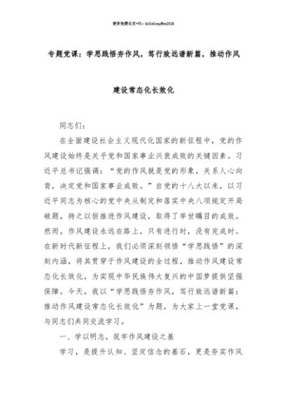 【七哥公文】2025年:【七哥公文】专题党课:学思践悟夯作风,笃行致远谱新篇,推动作风建设常态化长效化+更多免费公文+VX:QiGeGongWen2024+更多免费公文+VX:QiGeGongWen2024