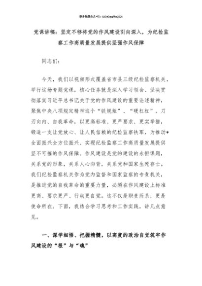 【七哥公文】2025年:【七哥公文】党课讲稿:坚定不移将党的作风建设引向深入,为纪检监察工作高质量发展提供坚强作风保障+更多免费公文+VX:QiGeGongWen2024+更多免费公文+VX:QiGeGongWen2024