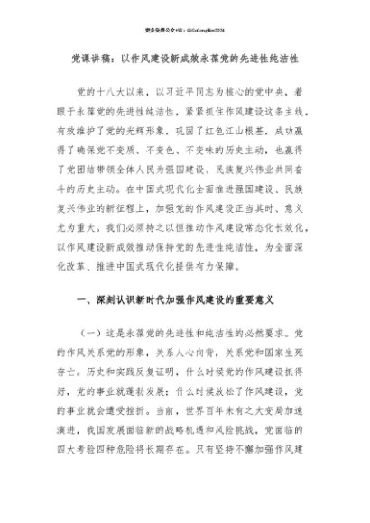 【七哥公文】2025年:【七哥公文】党课讲稿:以作风建设新成效永葆党的先进性纯洁性+更多免费公文+VX:QiGeGongWen2024+更多免费公文+VX:QiGeGongWen2024