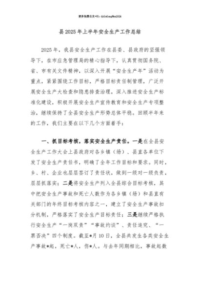 【七哥公文】2025年:【七哥公文】县2025年上半年安全生产工作总结+更多免费公文+VX:QiGeGongWen2024+更多免费公文+VX:QiGeGongWen2024