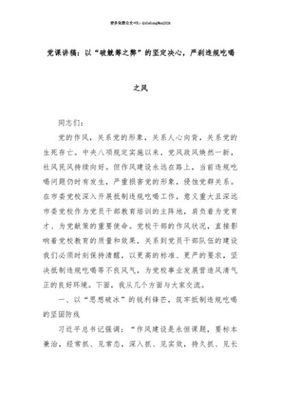 【七哥公文】2025年:【七哥公文】党课讲稿:以“破觥筹之弊”的坚定决心,严刹违规吃喝之风+更多免费公文+VX:QiGeGongWen2024+更多免费公文+VX:QiGeGongWen2024