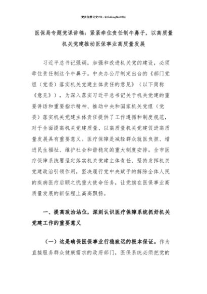【七哥公文】2025年:【七哥公文】医保局专题党课讲稿:紧紧牵住责任制牛鼻子,以高质量机关党建推动医保事业高质量发展+更多免费公文+VX:QiGeGongWen2024+更多免费公文+VX:QiGeGongWen2024