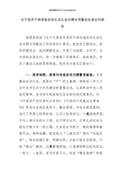 【七哥公文】2025年:【七哥公文】关于党员干部违规收送礼品礼金问题专项整治自查自纠报告+更多免费公文+VX:QiGeGongWen2024+更多免费公文+VX:QiGeGongWen2024
