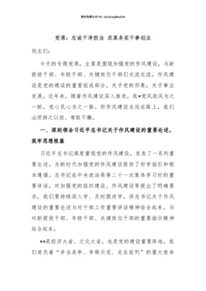 【七哥公文】2025年:【七哥公文】党课:忠诚干净担当 求真务实干事创业+更多免费公文+VX:QiGeGongWen2024+更多免费公文+VX:QiGeGongWen2024