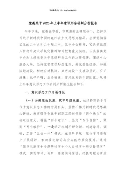 【七哥公文】2025年:【七哥公文】党委关于2025年上半年意识形态研判分析报告+更多免费公文+VX:QiGeGongWen2024+更多免费公文+VX:QiGeGongWen2024