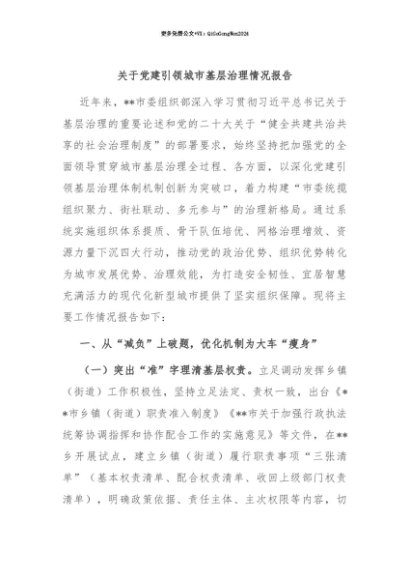 【七哥公文】2025年:【七哥公文】关于党建引领城市基层治理情况报告+更多免费公文+VX:QiGeGongWen2024+更多免费公文+VX:QiGeGongWen2024