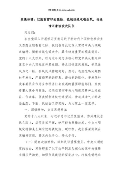 【七哥公文】2025年:【七哥公文】党课讲稿:以踏石留印的狠劲,抵制违规吃喝歪风,打造清正廉洁发改队伍+更多免费公文+VX:QiGeGongWen2024+更多免费公文+VX:QiGeGongWen2024
