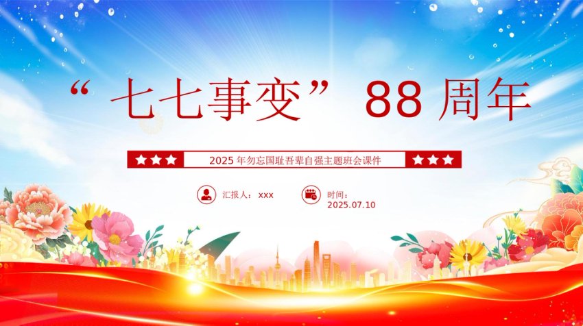 【七哥公文】2025年:【七哥公文】七七事变88周年PPT2025年勿忘国耻吾辈自强主题班会课件+更多免费公文+VX:QiGeGongWen2024+更多免费公文+VX:QiGeGongWen2024
