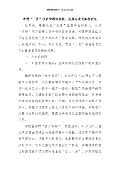 【七哥公文】2025年:【七哥公文】农村“三资”项目管理的现状、问题与改进路径研究+更多免费公文+VX:QiGeGongWen2024+更多免费公文+VX:QiGeGongWen2024