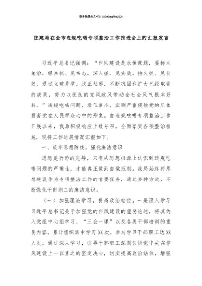 【七哥公文】2025年:【七哥公文】住建局在全市违规吃喝专项整治工作推进会上的汇报发言+更多免费公文+VX:QiGeGongWen2024+更多免费公文+VX:QiGeGongWen2024