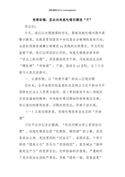 【七哥公文】2025年:【七哥公文】党课讲稿:坚决向违规吃喝问题说“不”+更多免费公文+VX:QiGeGongWen2024+更多免费公文+VX:QiGeGongWen2024