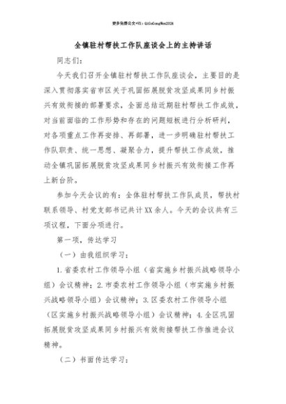 【七哥公文】2025年:【七哥公文】全镇驻村帮扶工作队座谈会上的主持讲话+更多免费公文+VX:QiGeGongWen2024+更多免费公文+VX:QiGeGongWen2024
