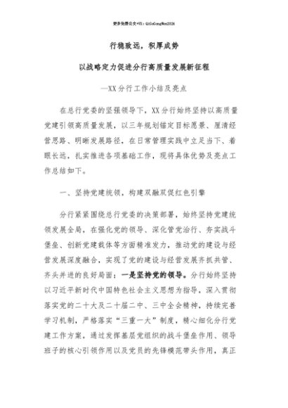 【七哥公文】2025年:【七哥公文】分行工作小结及亮点+更多免费公文+VX:QiGeGongWen2024+更多免费公文+VX:QiGeGongWen2024