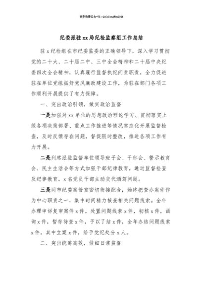 【七哥公文】2025年:【七哥公文】纪委派驻xx局纪检监察组工作总结+更多免费公文+VX:QiGeGongWen2024+更多免费公文+VX:QiGeGongWen2024