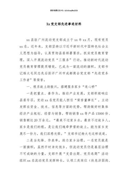 【七哥公文】2025年:【七哥公文】Xx党支部先进事迹材料+更多免费公文+VX:QiGeGongWen2024+更多免费公文+VX:QiGeGongWen2024