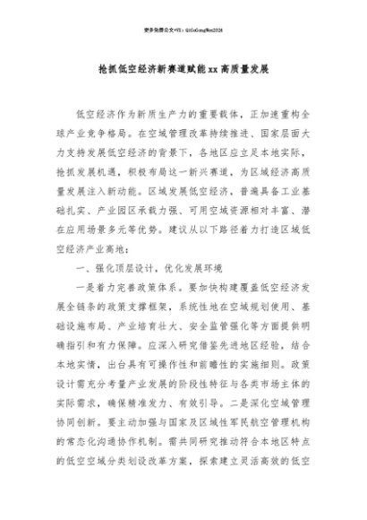 【七哥公文】2025年:【七哥公文】抢抓低空经济新赛道赋能xx高质量发展+更多免费公文+VX:QiGeGongWen2024+更多免费公文+VX:QiGeGongWen2024