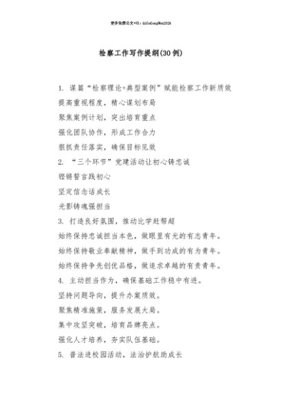 【七哥公文】2025年:【七哥公文】(30例)检察工作写作提纲+更多免费公文+VX:QiGeGongWen2024+更多免费公文+VX:QiGeGongWen2024