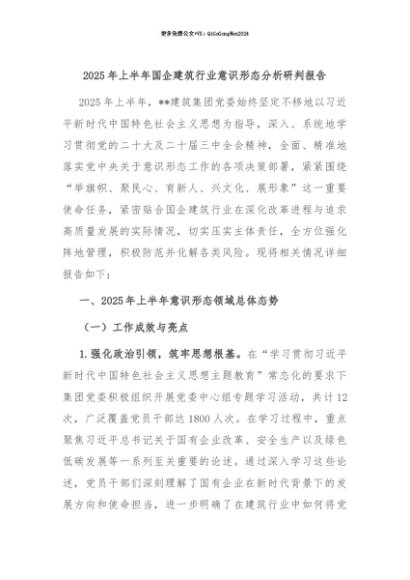 【七哥公文】2025年:【七哥公文】2025年上半年国企建筑行业意识形态分析研判报告+更多免费公文+VX:QiGeGongWen2024+更多免费公文+VX:QiGeGongWen2024