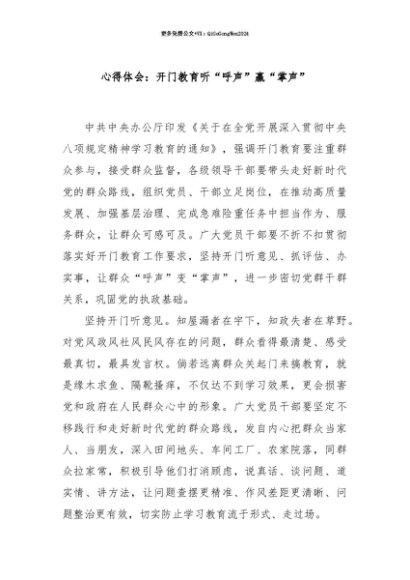 【七哥公文】2025年:【七哥公文】心得体会:开门教育听“呼声”赢“掌声”+更多免费公文+VX:QiGeGongWen2024+更多免费公文+VX:QiGeGongWen2024