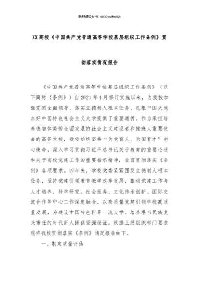 【七哥公文】2025年:【七哥公文】XX高校《中国共产党普通高等学校基层组织工作条例》贯彻落实情况报告+更多免费公文+VX:QiGeGongWen2024+更多免费公文+VX:QiGeGongWen2024