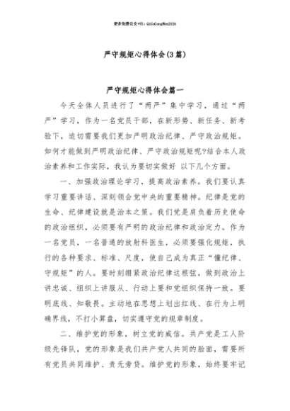 【七哥公文】2025年:【七哥公文】(3篇)严守规矩心得体会+更多免费公文+VX:QiGeGongWen2024+更多免费公文+VX:QiGeGongWen2024