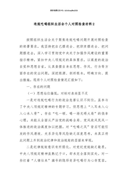 【七哥公文】2025年:【七哥公文】违规吃喝组织生活会个人对照检查材料2+更多免费公文+VX:QiGeGongWen2024+更多免费公文+VX:QiGeGongWen2024