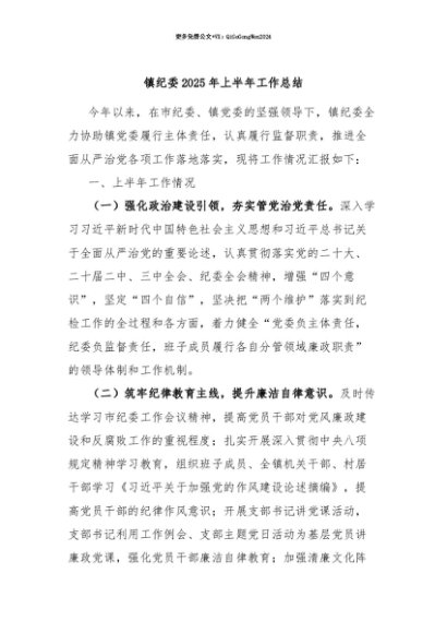 【七哥公文】2025年:【七哥公文】镇纪委2025年上半年工作总结+更多免费公文+VX:QiGeGongWen2024+更多免费公文+VX:QiGeGongWen2024