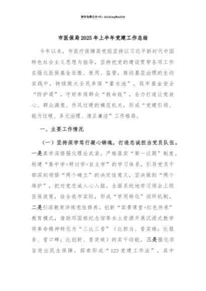 【七哥公文】2025年:【七哥公文】市医保局2025年上半年党建工作总结+更多免费公文+VX:QiGeGongWen2024+更多免费公文+VX:QiGeGongWen2024