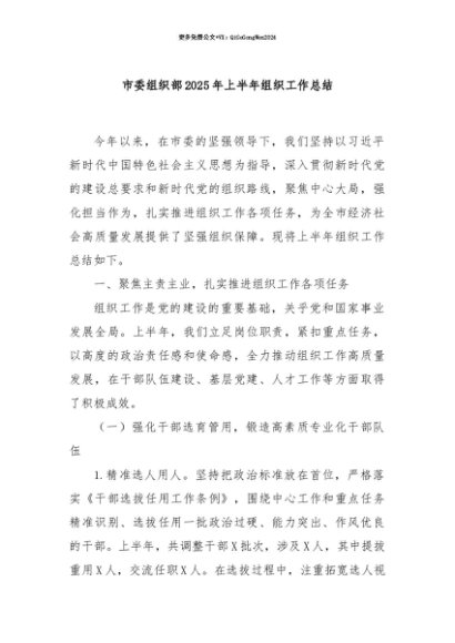【七哥公文】2025年:【七哥公文】市委组织部2025年上半年组织工作总结+更多免费公文+VX:QiGeGongWen2024+更多免费公文+VX:QiGeGongWen2024