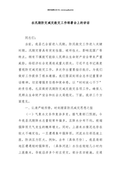 【七哥公文】2025年:【七哥公文】在汛期防灾减灾救灾工作部署会上的讲话+更多免费公文+VX:QiGeGongWen2024+更多免费公文+VX:QiGeGongWen2024