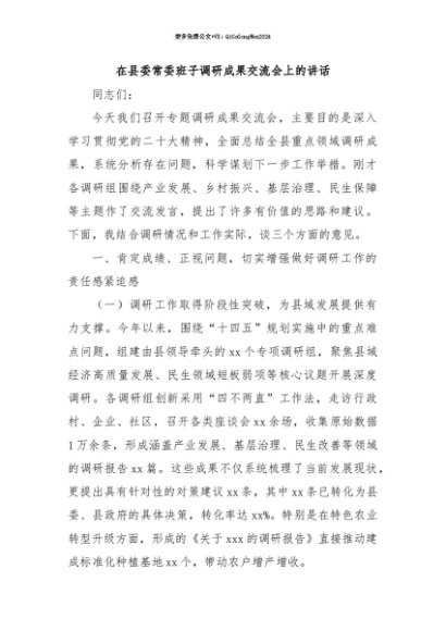 【七哥公文】2025年:【七哥公文】在县委常委班子调研成果交流会上的讲话+更多免费公文+VX:QiGeGongWen2024+更多免费公文+VX:QiGeGongWen2024