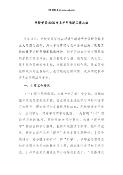 【七哥公文】2025年:【七哥公文】学校党委2025年上半年党建工作总结+更多免费公文+VX:QiGeGongWen2024+更多免费公文+VX:QiGeGongWen2024