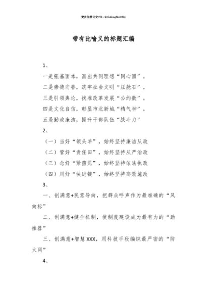 【七哥公文】2025年:【七哥公文】带有比喻义的标题汇编+更多免费公文+VX:QiGeGongWen2024+更多免费公文+VX:QiGeGongWen2024
