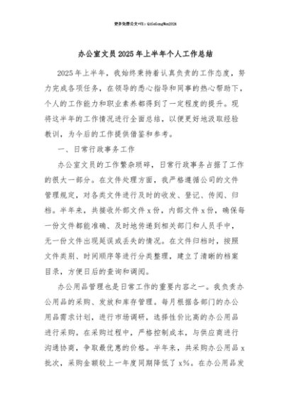 【七哥公文】2025年:【七哥公文】办公室文员2025年上半年个人工作总结+更多免费公文+VX:QiGeGongWen2024+更多免费公文+VX:QiGeGongWen2024