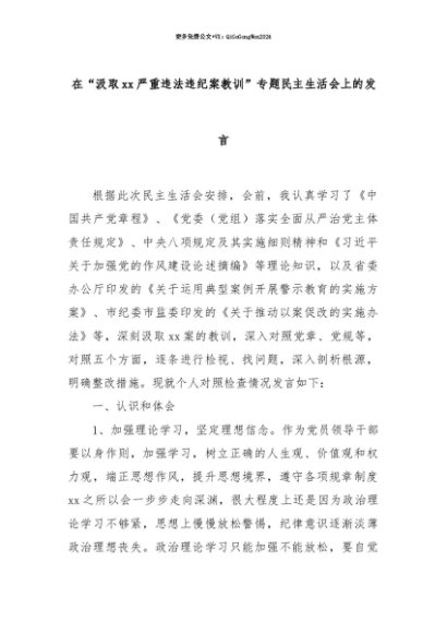 【七哥公文】2025年:【七哥公文】在“汲取xx严重违法违纪案教训”专题民主生活会上的发言+更多免费公文+VX:QiGeGongWen2024+更多免费公文+VX:QiGeGongWen2024