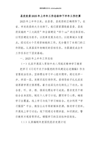 【七哥公文】2025年:【七哥公文】县发改委2025年上半年工作总结和下半年工作打算+更多免费公文+VX:QiGeGongWen2024+更多免费公文+VX:QiGeGongWen2024