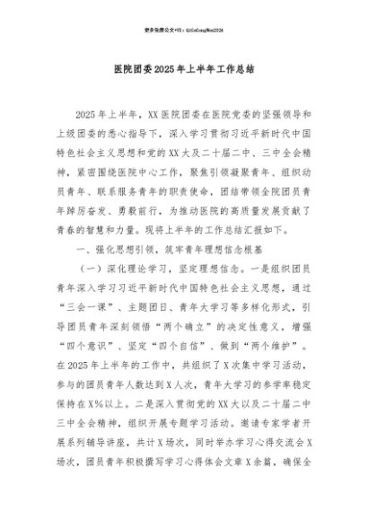 【七哥公文】2025年:【七哥公文】医院团委2025年上半年工作总结+更多免费公文+VX:QiGeGongWen2024+更多免费公文+VX:QiGeGongWen2024