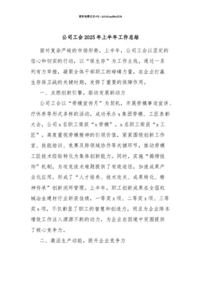【七哥公文】2025年:【七哥公文】公司工会2025年上半年工作总结+更多免费公文+VX:QiGeGongWen2024+更多免费公文+VX:QiGeGongWen2024
