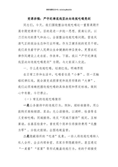 【七哥公文】2025年:【七哥公文】党课讲稿:严守纪律底线坚决向违规吃喝亮剑+更多免费公文+VX:QiGeGongWen2024+更多免费公文+VX:QiGeGongWen2024