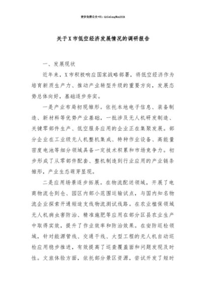 【七哥公文】2025年:【七哥公文】关于X市低空经济发展情况的调研报告+更多免费公文+VX:QiGeGongWen2024+更多免费公文+VX:QiGeGongWen2024