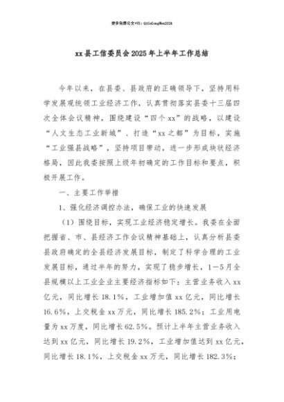 【七哥公文】2025年:【七哥公文】xx县工信委员会2025年上半年工作总结+更多免费公文+VX:QiGeGongWen2024+更多免费公文+VX:QiGeGongWen2024