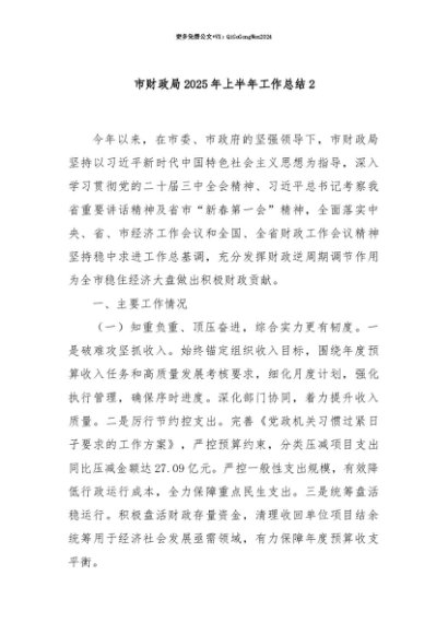 【七哥公文】2025年:【七哥公文】市财政局2025年上半年工作总结2+更多免费公文+VX:QiGeGongWen2024+更多免费公文+VX:QiGeGongWen2024
