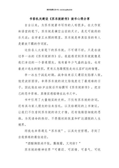 【七哥公文】2025年:【七哥公文】书香机关建设《苏东坡新传》读书心得分享+更多免费公文+VX:QiGeGongWen2024+更多免费公文+VX:QiGeGongWen2024