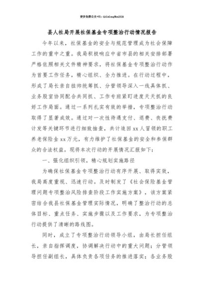 【七哥公文】2025年:【七哥公文】县人社局开展社保基金专项整治行动情况报告+更多免费公文+VX:QiGeGongWen2024+更多免费公文+VX:QiGeGongWen2024
