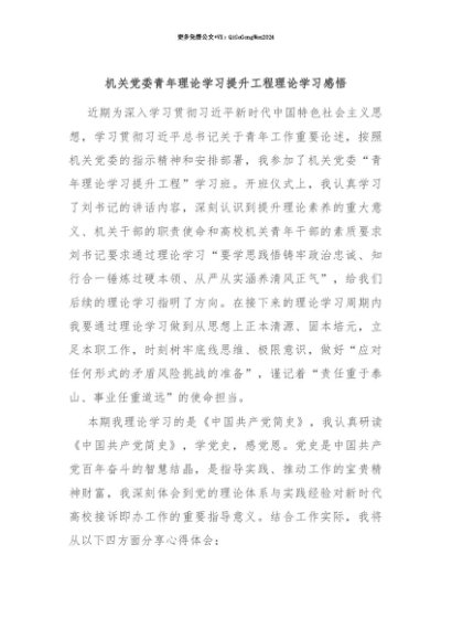 【七哥公文】2025年:【七哥公文】机关党委青年理论学习提升工程理论学习感悟+更多免费公文+VX:QiGeGongWen2024+更多免费公文+VX:QiGeGongWen2024