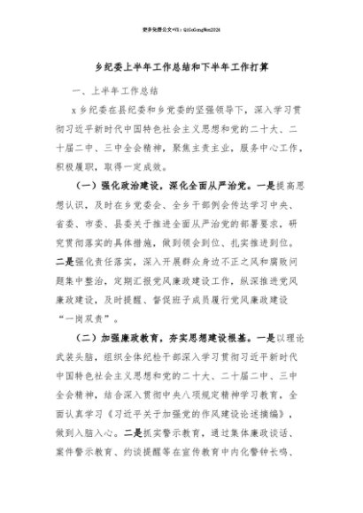 【七哥公文】2025年:【七哥公文】乡纪委上半年工作总结和下半年工作打算+更多免费公文+VX:QiGeGongWen2024+更多免费公文+VX:QiGeGongWen2024