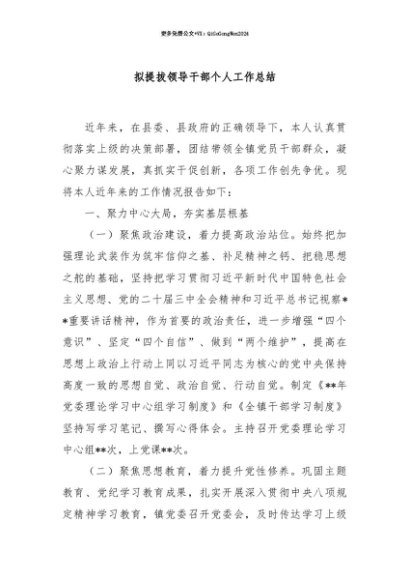 【七哥公文】2025年:【七哥公文】拟提拔领导干部个人工作总结+更多免费公文+VX:QiGeGongWen2024+更多免费公文+VX:QiGeGongWen2024