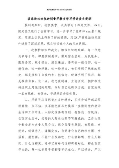 【七哥公文】2025年:【七哥公文】汲取违法违规教训警示教育学习研讨发言提纲+更多免费公文+VX:QiGeGongWen2024+更多免费公文+VX:QiGeGongWen2024