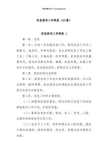 【七哥公文】2025年:【七哥公文】(20篇)信息报送工作制度+更多免费公文+VX:QiGeGongWen2024+更多免费公文+VX:QiGeGongWen2024